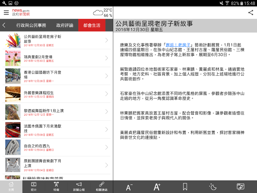 This app is produced by the Information Services Department of the Hong Kong SAR Government. It provides the latest contents of the government e-bulletin website - https://www.news.gov.hk: