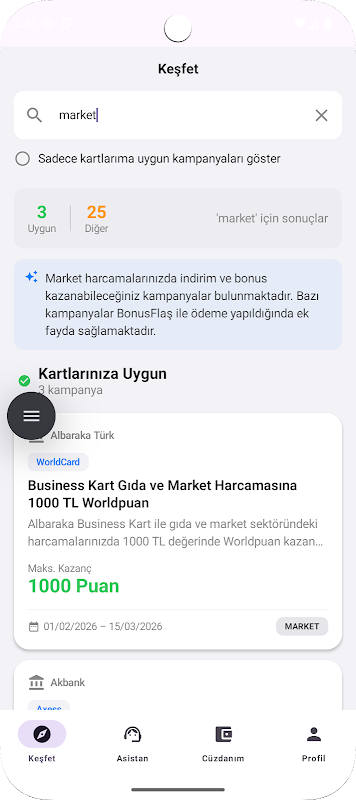 Recommends the most advantageous campaigns based on your shopping habits and performs card-based filtering.