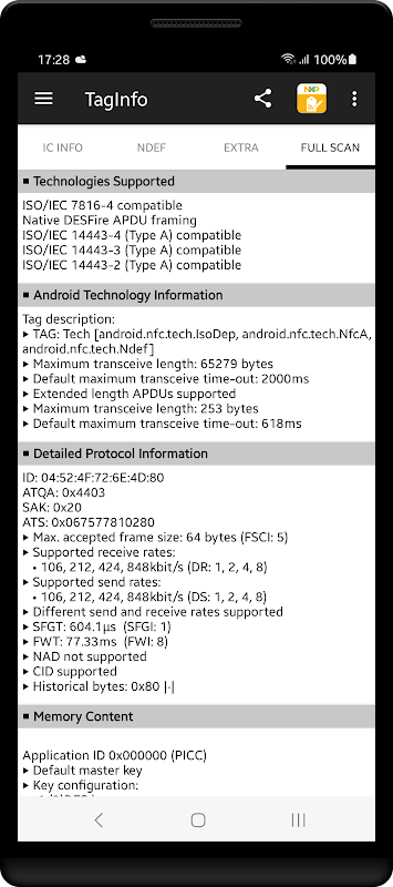 你想看看幕後,探索NFC功能的項目你和你的朋友嗎?在這裡你可以找到答案。掃描使用TagInfo。