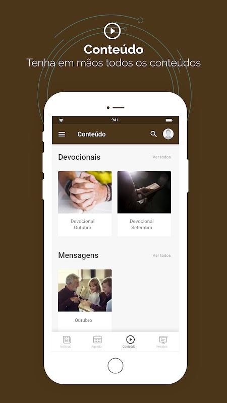 應用程序上可用的資源:新聞、教會議程、活動、內容、項目、直播和教學模塊