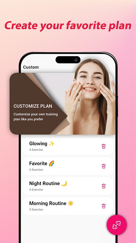 - 個人化 15 天計畫包括日常瘦身運動、臉頰提拉和臉部鍛煉