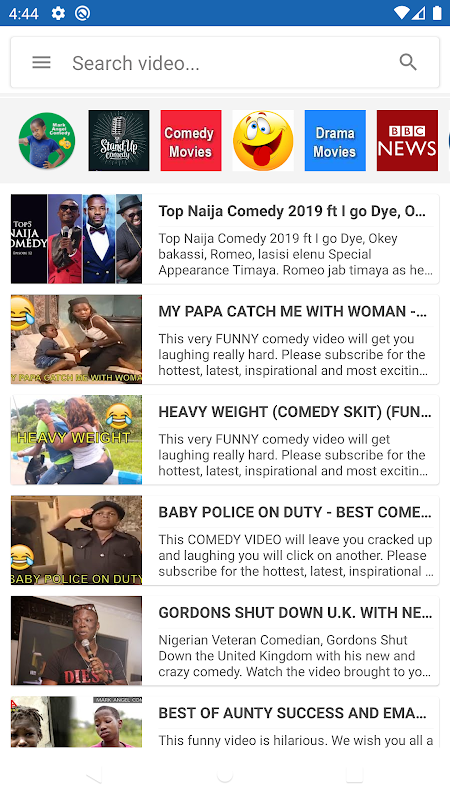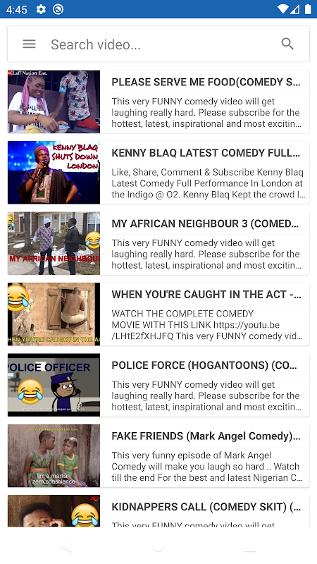 觀看尼日利亞人最佳喜劇演員視頻籃口,馬克天使尼日利亞喜劇和funnyVideos:使用此應用程序,您可以免費使用該應用程序觀看所有尼日利亞喜劇演員視頻,尼日利亞簡短有趣的視頻。由尼日利亞喜劇演員安裝和欣賞:Emmanuella Comedy和其他人。