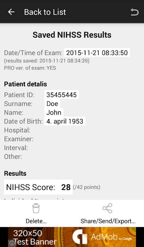 評估,計算,保存,導出NIHSS,mNIHSS,sNIHSS-8或sNIHSS-5分數。
