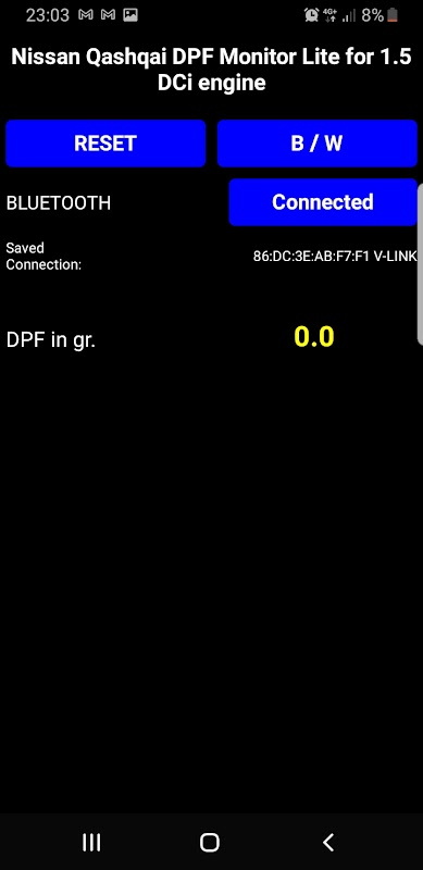 The application is able to manage the data coming from ELM327 OBD2 Bluetooth adapter plugged on OBD port of Nissan Qashqai K9K engine models.