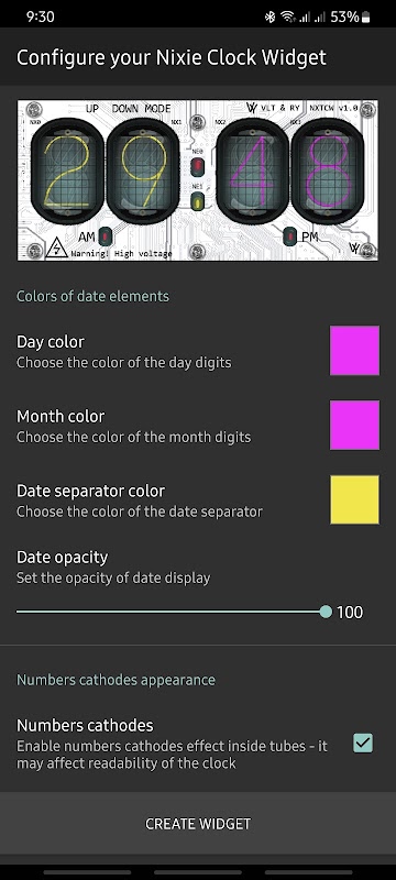 https://play.google.com/store/apps/details?id=com.vulterey.nixieclockwidget