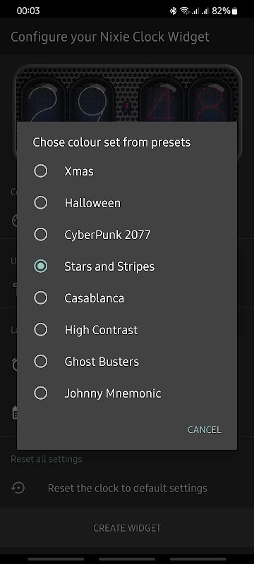 ★ 顏色預設 - 您可以為您的時鐘挑選一些假期/流行文化主題的顏色預設