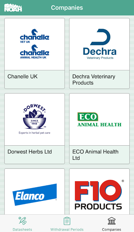 NOAH Compendium 可以轻松找到有效和安全给药所需的重要信息,包括适应症、剂量、警告、禁忌症、使用注意事项和停药期。大多数产品都提供 GTIN。