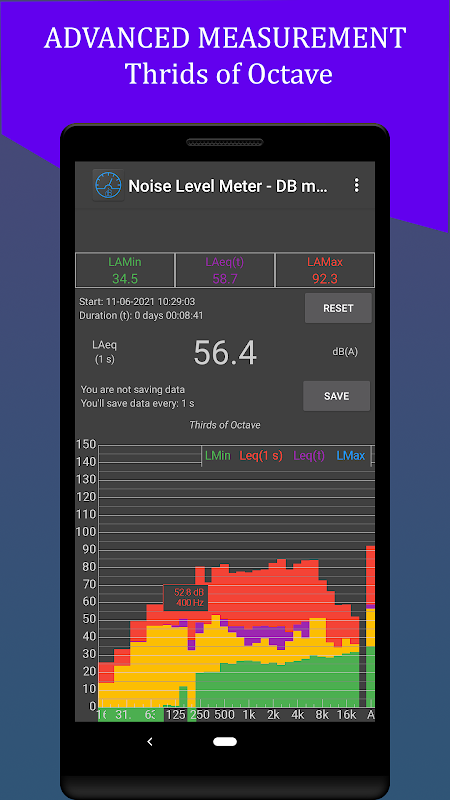此應用程序不是專為專業使用而設計的,它可以專業使用(只有正確調平),如果它沒有很好地調平。它不能保證準確測量噪聲。