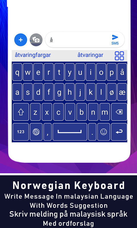 英語挪威語鍵盤是雙鍵盤,專為銀河智能手機設計。這種多語言鍵盤具有手勢輸入和滑行輸入功能。
