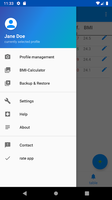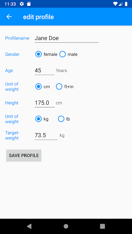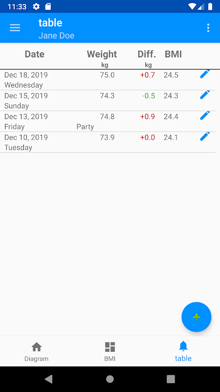The weight diary offers the possibility to keep a history for any number of people. So you can keep track of their family or friends' data .