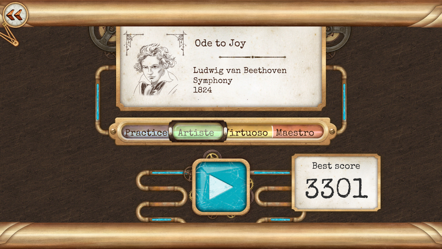 幫助熱氣騰騰,蒸汽朋克導體一樣,來自莫扎特和貝多芬的偉大作曲家一起玩到你最喜歡的交響樂。提高利用經典樂譜視線讀書筆記的技能。從維多利亞時代像月光奏鳴曲和歡樂頌一起攻歌體驗舒緩的節奏。