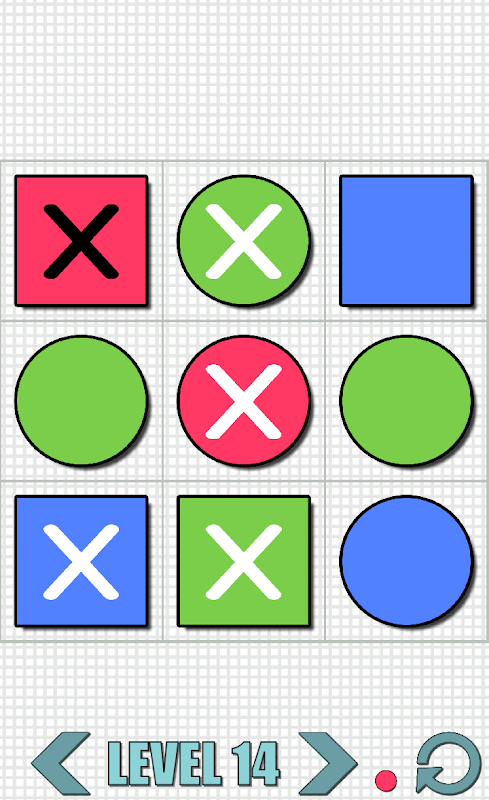 The goal is to fill all game field. You can move to the same figure or same color. Use your logic and pass all 30 levels!