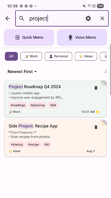 智慧筆記應用,帶有標籤和分類。支援快速備忘錄和錄音!