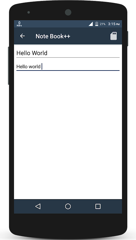 NoteBook ++是一款全新的舒適而簡單的NoteBook ++,可直接放在智能手機上。它始終掌握在您的手中,您只需寫下您想做的事或不要忘記的事。此外,您可以使用不同的註釋鎖定個人信息。你可以在SD卡中導出。你可以聽到你的筆記。並將您的筆記分享給您的朋友。