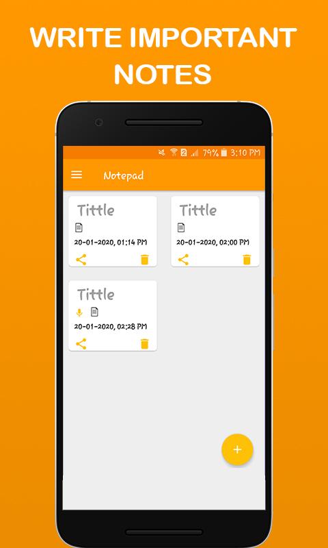 通過便箋應用程序輕鬆編寫您的便箋,該應用程序可提供快速簡便的便箋創建和清單。從相機記錄筆記或創建語音筆記,並通過記事本鎖定功能啟用所有重要筆記的安全性。限制您的其他個人筆記,在記事本筆記應用程序上應用筆記鎖以確保安全。快速保存您的想法,使用筆記應用程序使用語音轉文本功能來保存文本註釋,照片或語音註釋。