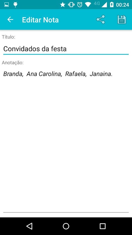 Simples, fácil de usar. Este App que foi desenvolvido pensando em você que sempre quer ter em suas mãos algo para fazer suas anotações ou lembretes de forma rápida, fácil e simples com poucos toques. Notepad, Textpad. Anotações.