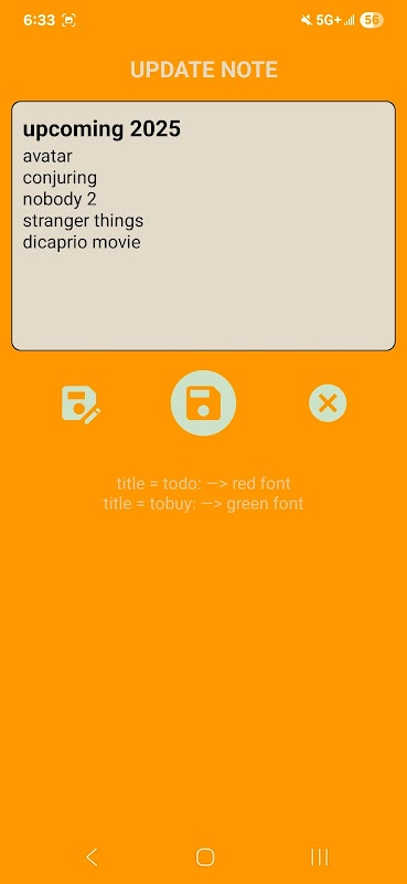 儲存標題為「todo:」的筆記時,文字會顯示紅色。