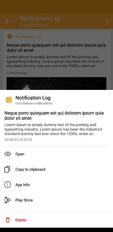 The archive remembers notifications, grouped by application (including system applications). You can filter / ignore applications (longer press).