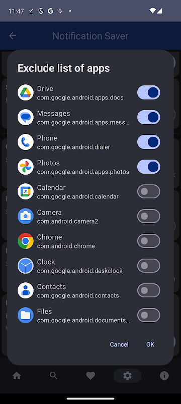 - 要排除的應用程式清單:選擇您不想儲存通知的應用程式。