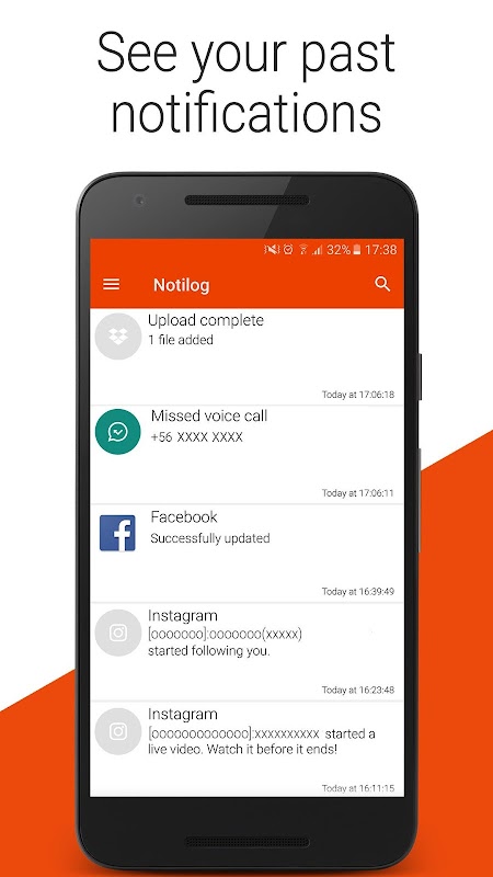 Notilog let you log every single notification! You can look back to past notifications, even the ones that disappeared before you could read them!