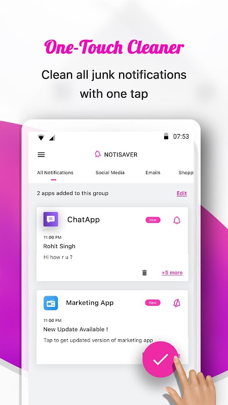 NotiSaver:Notification Clean 是一款通知攔截器應用程序,可讓您直接從 notisave 應用程序點擊一下即可下載 WA 狀態。