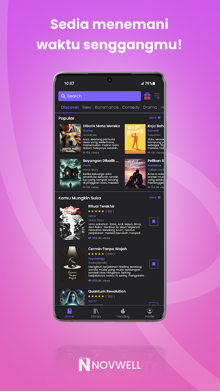 歡迎使用Novwell,一個免費的小說閱讀應用程序,讓閱讀體驗變得更加有趣,而無需花費很多錢!如果你喜歡浪漫故事、激動人心的冒險、讓你好奇的懸疑小說或讓你思考的科幻小說,諾夫韋爾擁有一切。現在您可以隨時隨地閱讀精彩小說,無需隱藏費用。