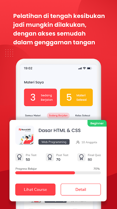 NusaLMS 應用程序旨在幫助公司管理員工、合作夥伴和客戶培訓,使其更加靈活、可擴展且更具成本效益。
