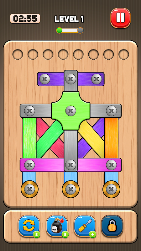 擰開木螺帽:擰開不同的木螺帽!每個關卡都會帶來新的挑戰,既有趣又令人興奮。
