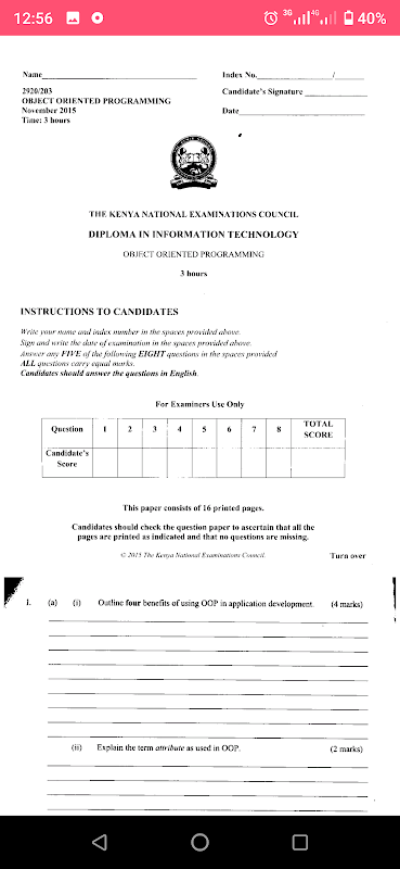 Knec 面向對象編程過去的論文。這是一本有用的複習學習指南,可幫助學習者準備考試。