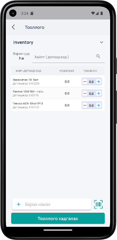Тооллогоос бараануудын нэр, цувралын дугаар, баркодоор хайх боломж