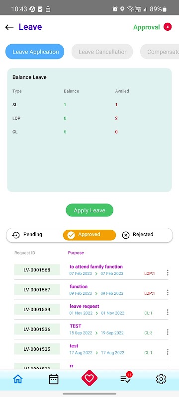 另一方面,部門主管可以批准或拒絕來自員工的不同類型的請求。他還可以查看各種報告,包括休假報告,預先報告,旅行報告等。