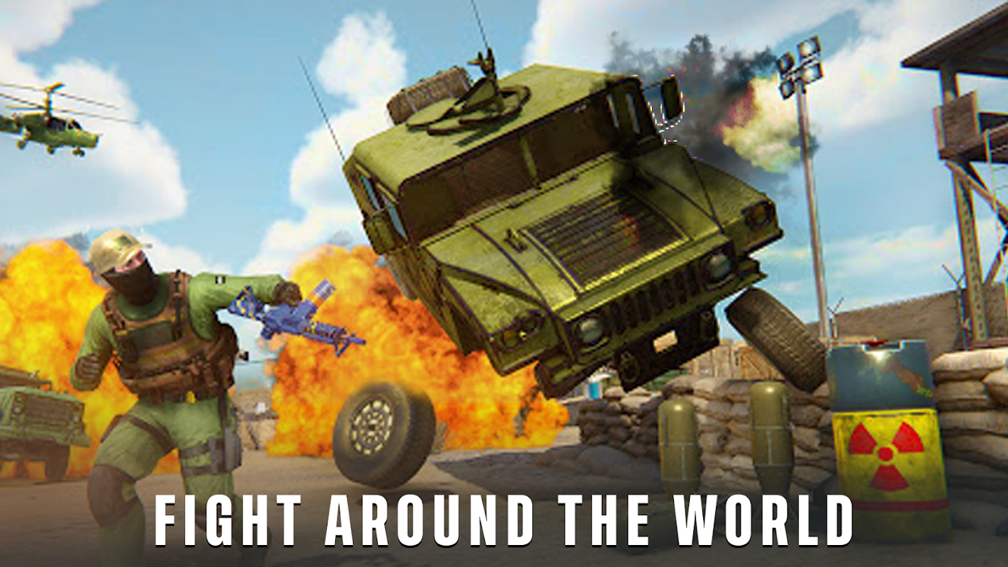 離線戰爭遊戲 3d 槍戰遊戲在此射擊遊戲中有 4 種不同的模式。在此戰爭遊戲中,您將享受重型武器的終極格鬥遊戲體驗。此 fps 遊戲的所有 4 種模式均可離線使用並免費玩。您將玩這款戰爭遊戲並享受戰爭時代。