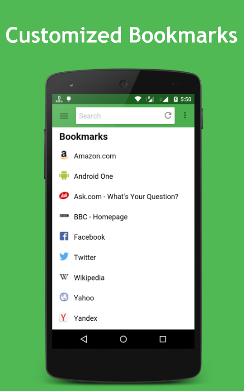 • Bookmarks manager to import bookmarks from Android browser