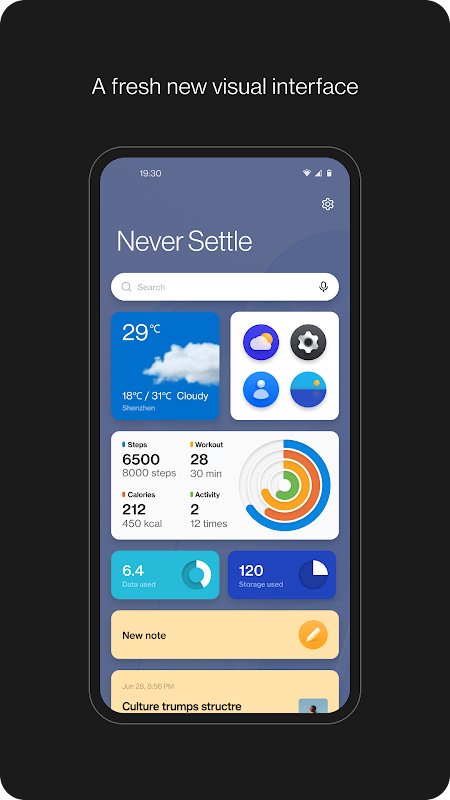 Shelf 為你提供便捷的資訊展示服務,你可在這裡快捷控制你的一加設備、使用工具箱、快速記便簽、瀏覽數據卡片、天氣資訊和各種應用小部件。