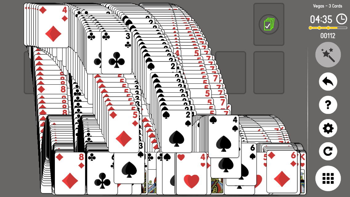 有些人認為單人紙牌“克朗代克”的任何組合都是可能的,但事實並非如此。事實上,並非所有組合都會收斂。我們開發了一種算法,可以讓你生成一副牌,這樣就可以使紙牌收斂。我們很高興推出我們的單人紙牌“克朗代克”。我們保證所有的紙牌遊戲都有解決方案。如果您無法解決難題,則有機會在遊戲中使用幫助功能。您可以檢查導致正確結果的所有動作,並分析出錯的動作。