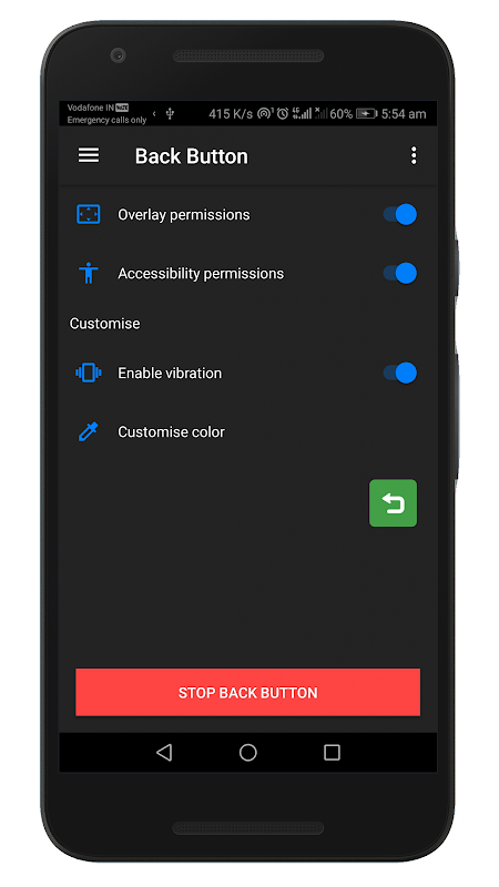 If the physical buttons of your phone can not work properly, Only Back Button can continue work your phone with simulating same as system back button.