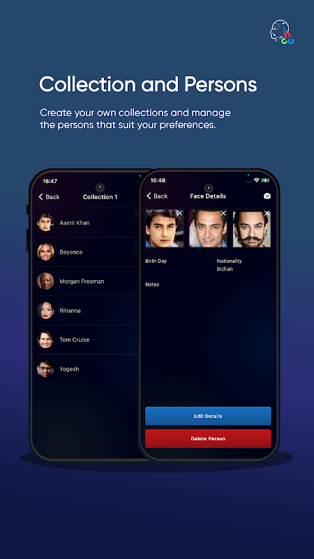 該應用程式使用 NIST 的十大深度學習 FR 演算法進行準確的人臉驗證(即根據參考照片驗證人)和人臉辨識(即從註冊的人臉中識別人)。