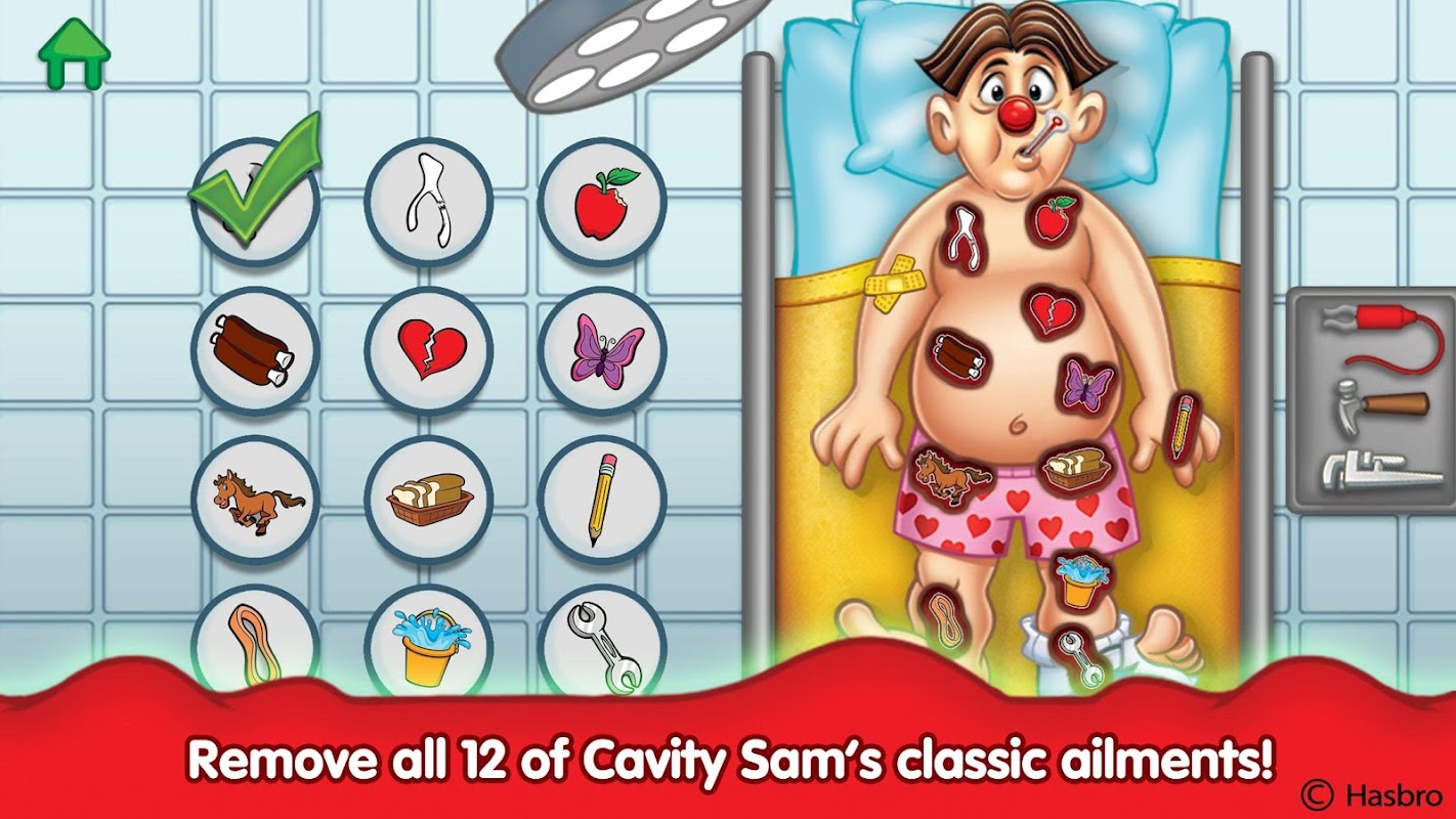 每次成功操作後,請返回手術台,以選擇下一個要解決的疾病!有十二種方法可以使Cavity Sam感覺更好,並且每個方法背後都有一個相關的故事!此外,每項成功的手術都包括易於閱讀的“經驗教訓”,孩子們可以利用這些經驗教訓來保持健康和堅強的自己的生活。
