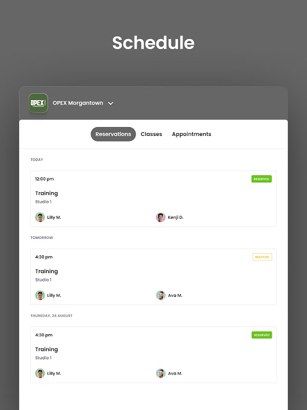 OPEX Morgantown 會員的課程預訂和帳戶管理