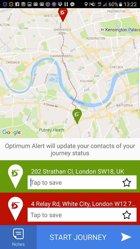 Traveling? The Journey feature allows you to notify your friends, family, and co-workers of your movements while traveling. Enter your start and end point, and an SMS & email will be sent to your emergency contacts when you’ve started and safely completed your journey.