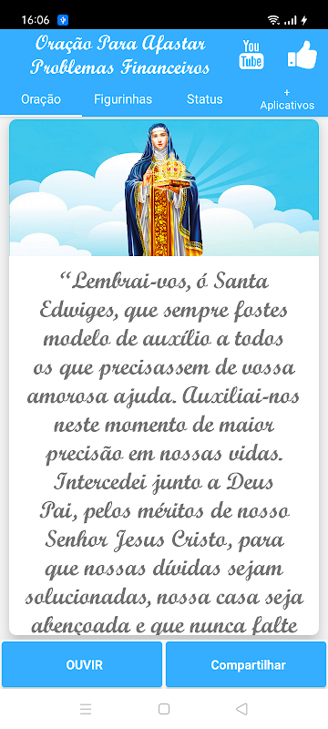 “Lembrai-vos, ó Santa Edwiges, que sempre fostes modelo de auxílio a todos os que precisassem de vossa amorosa ajuda. Auxiliai-nos neste momento de maior precisão em nossas vidas. Intercedei junto a Deus Pai, pelos méritos de nosso Senhor Jesus Cristo, para que nossas dívidas sejam solucionadas, nossa casa seja abençoada e que nunca falte o alimento necessário para a nossa sobrevivência física e espiritual. Socorrei-nos, vós que fostes fidelidade, dedicação e exemplo de família, para que saibamos servir com amor àqueles que convivemos, seja no trabalho ou no aconchego do lar. Dai-nos a vossa proteção e transformai nossas vidas para que, seguindo vosso exemplo, sejamos imitadores da bondade, fortaleza e mansidão que brotam de vós. Amém.”