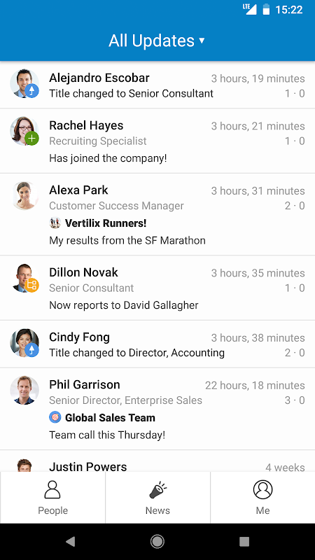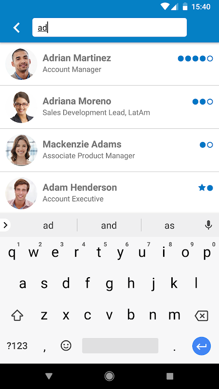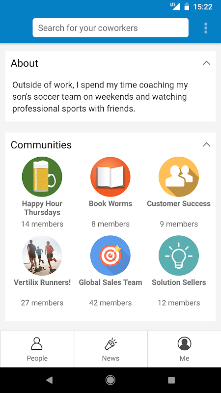 - 尋找同事並透過電話、簡訊、電子郵件和聊天快速聯繫他們。