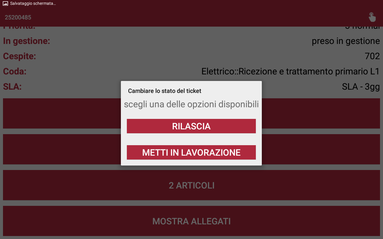 - Presa in carico e cambiamento stato ticket con un semplice click