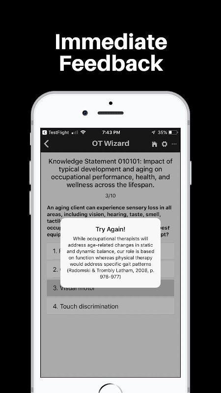 Welcome to the OT Wizard app! This app is designed for occupational therapy students studying for their exam. It is centered on the current NBCOT® Content Outline for the OTR® Examination. This app contains 550 practice questions to help prepare you to pass the exam!