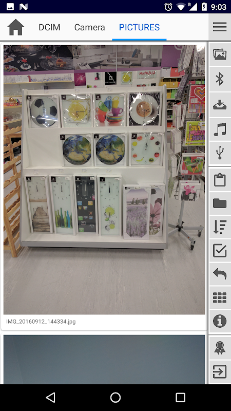 • Quick access icons for you SD card, Camera folder, Bluetooth folder, Downloads and Music folder.