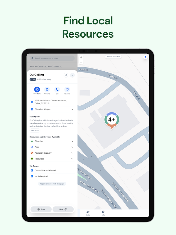 通過OurCalling無家可歸者服務應用程序,您可以在全國各個城市搜索資源。尋找最近的避難所,食品儲藏室,家庭暴力中心或成癮恢復資源?這個程序將指導你。