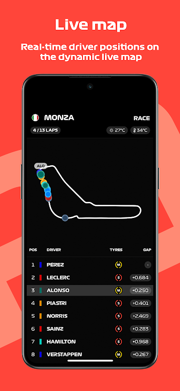 • 即時計時:透過我們的即時排行榜掌握比賽的脈動。監控車手和車隊的排名,體驗在您眼前展開的比賽的刺激。現在您可以在比賽期間存取每位車手的單圈歷史記錄。深入研究他們的性能數據。