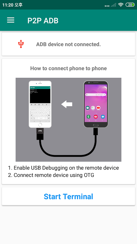 P2P ADB 是在 Android 智能手機上運行的實際 ADB 程序。該程序可以向通過 OTG 電纜連接的智能手機發送 ADB 命令。