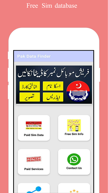 Pak E Services Pak Sim Datais a free application that lets you know the name of any Pakistani SIM owner. If someone is irritating by an unknown number, you can know the details of their number by using the sim owner details app.
