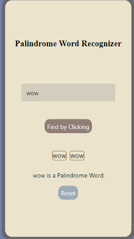 該應用程序顛倒用戶輸入的單詞並檢查向後是否相同。